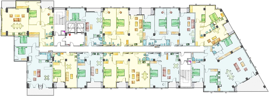 Концепция жилого района адаптирована к потребностям будущих жильцов. Квартиры предназначены для новых семей, арендаторов, студентов или многодетных семей. Жилые площади квартир начинаются от 53 кв.м.